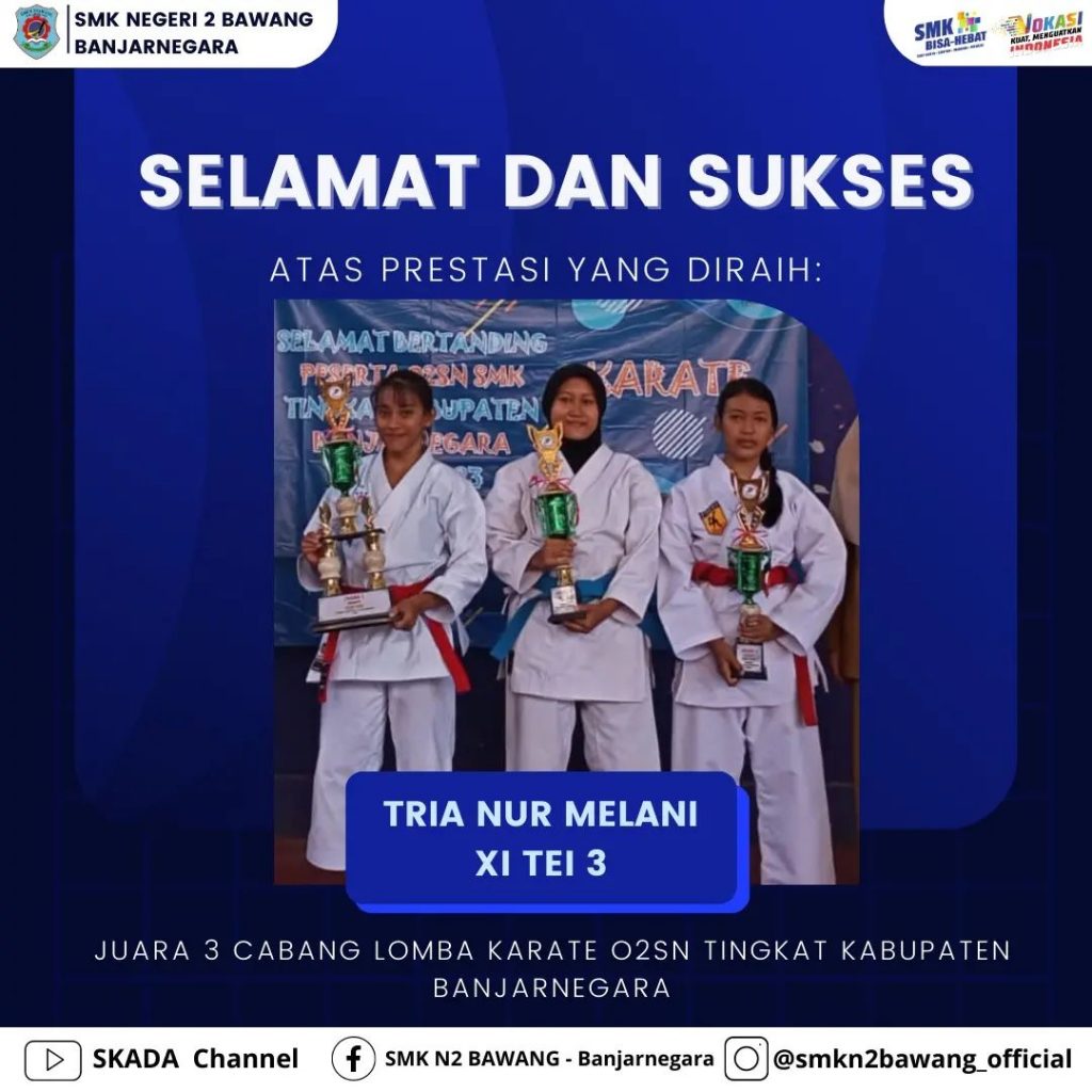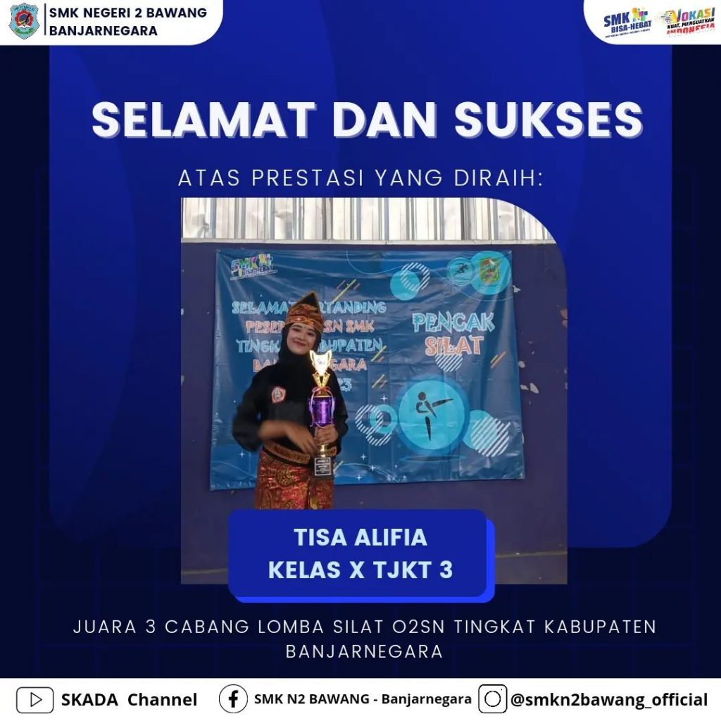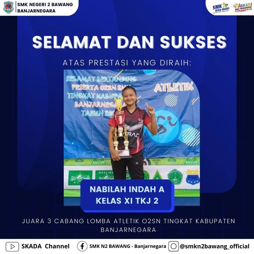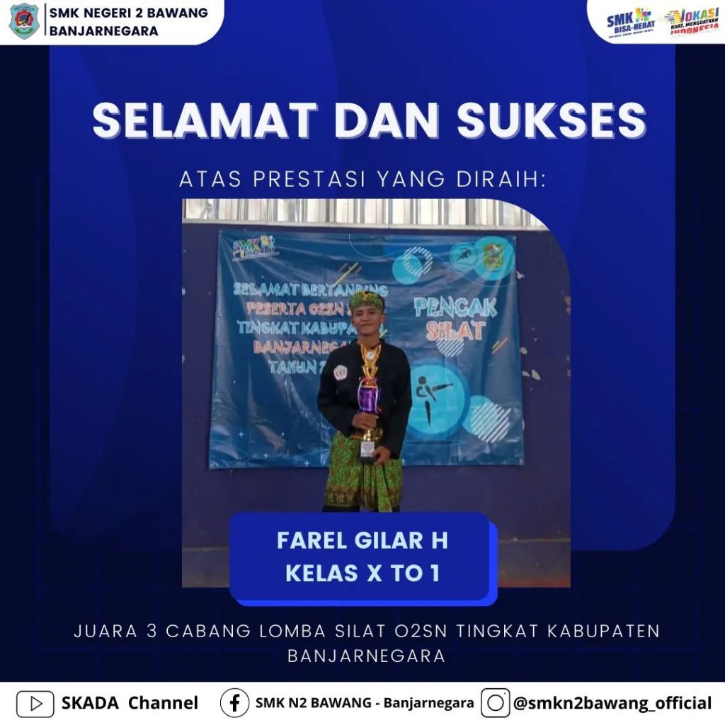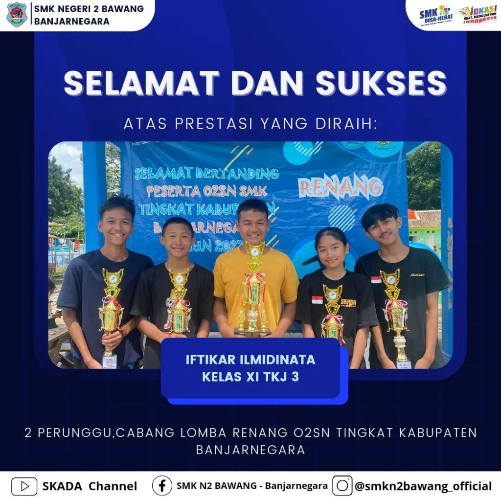 Selamat kepada IFTIKAR ILMIDINATA yang telah berhasil memperoleh 2 Perunggu Cabang Lomba Renang O2SN Tingkat Kabupaten Banjarnegara. Terima kasih kepada para atlit, pembina, pelatih dan seluruh warga SMK Negeri 2 Bawang yang telah memberikan doa serta dukungannya.