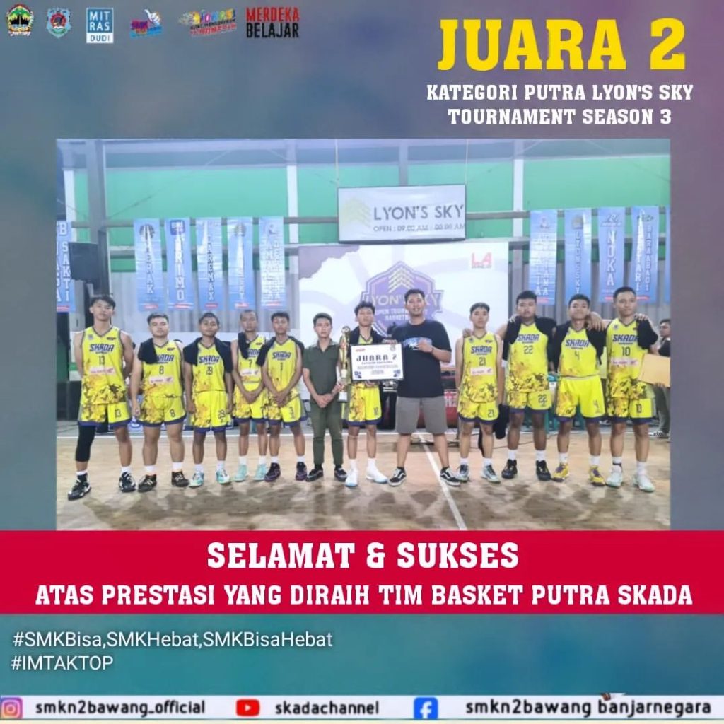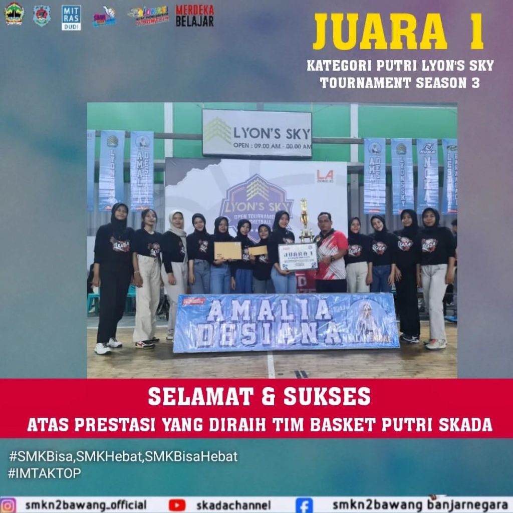 SMK NEGERI 2 BAWANG _ JUARA 1 KATEGORI PUTRI LYON’S SKY TOURNAMENT SEASON 3 Alhamdulillah atas Rahmat Tuhan, kerja keras dan ekstra semangat, tim basket putri @skadabasketball berhasil menduduki tangga teratas dan berhasil mengalahkan Smansabara dalam partai final yang sangat Read More …